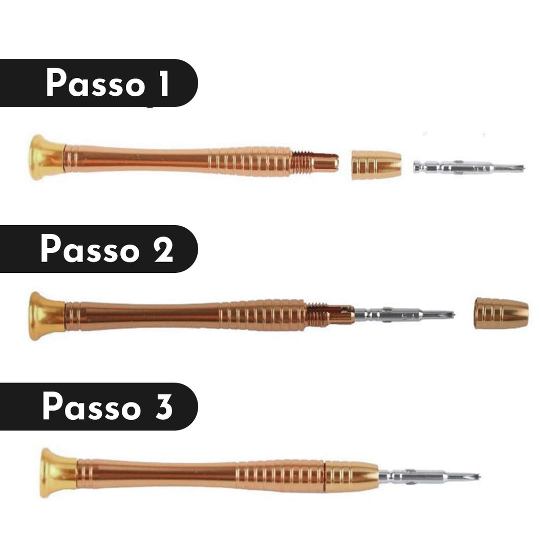 Cansado de pagar técnicos caros para consertar seus eletrônicos? Com o Jogo de Chaves de Precisão, você mesmo pode realizar reparos em seus smartphones, tablets, notebooks e outros dispositivos!