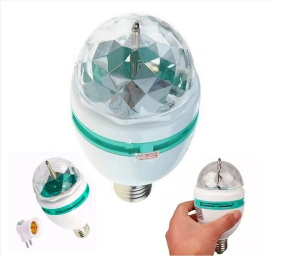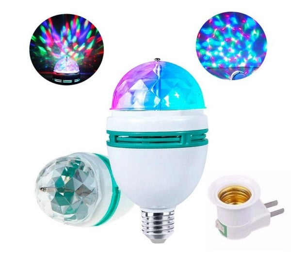 A Lâmpada de LED RGB Rotativa para para efeitos especiais de luzes e cores, com sockete E27 para tomadas.