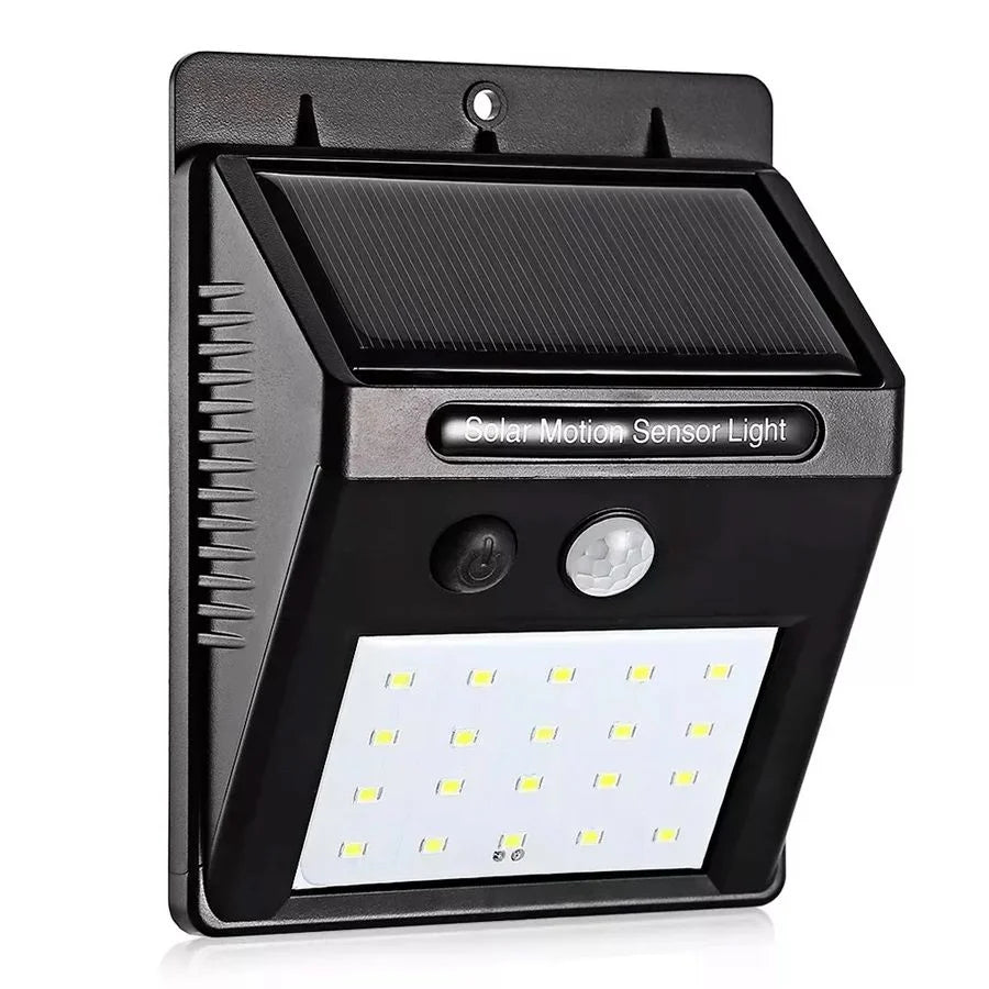 Luminaria Parede Solar 30 Leds Sensor Movimento Luz Preto
