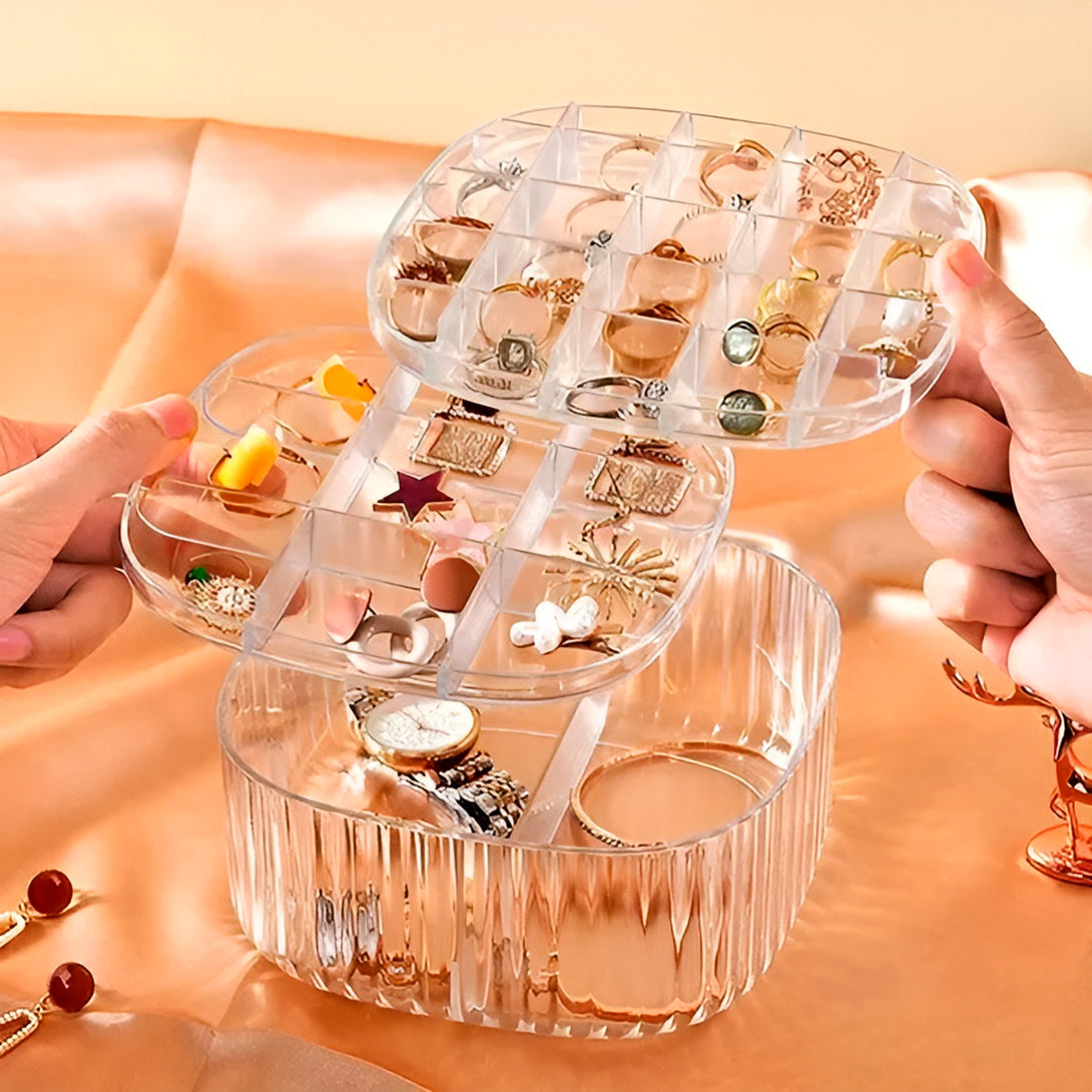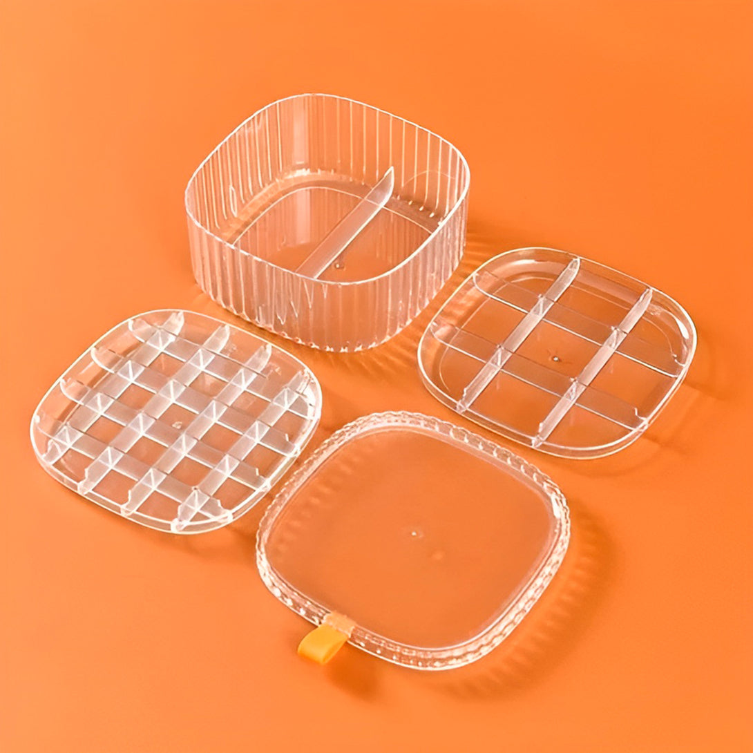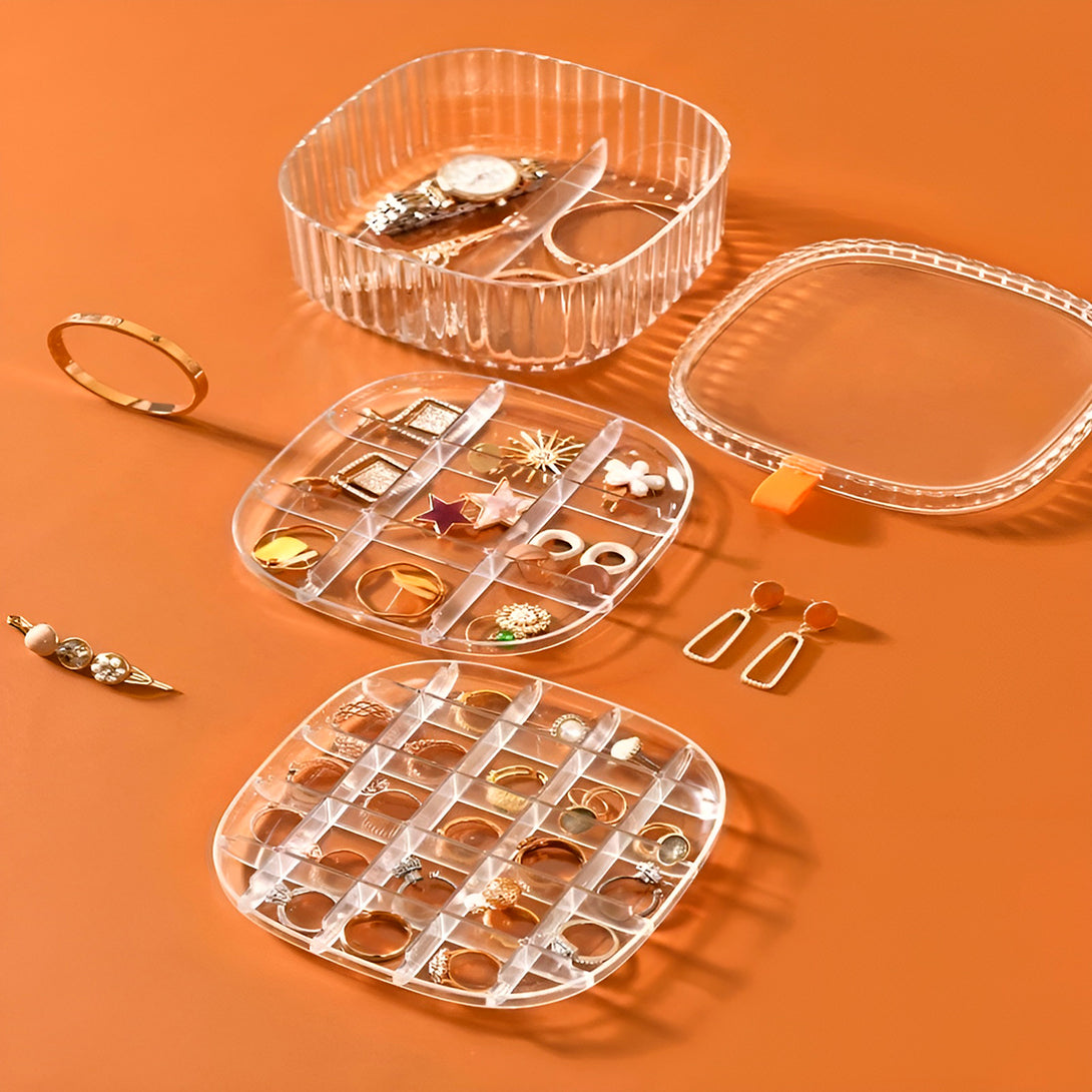 Com design sofisticado e transparência cristalina, essa caixa organizadora é perfeita para armazenar anéis, colares, brincos, pulseiras e outros acessórios de forma prática e segura.
