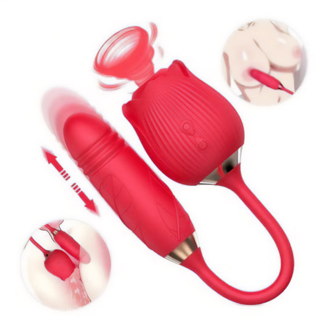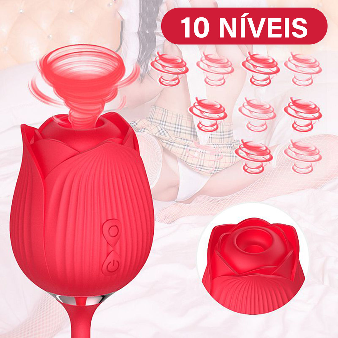 Vibrador Ponto G Clitóris Vai e Vem Formato Rosa Recarregável USB Cor:Vermelho